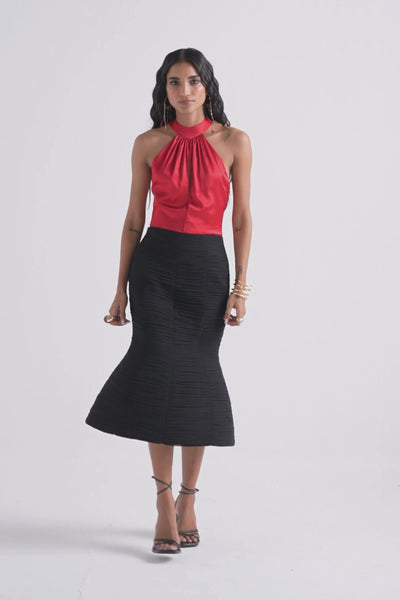 Ruched Dome Midi Skirt in Black